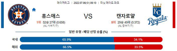 【MLB】 7월 6일 휴스턴 vs 캔자스시티