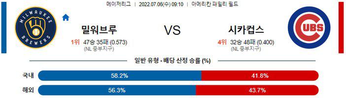 【MLB】 7월 6일 밀워키 vs 시카고 컵스