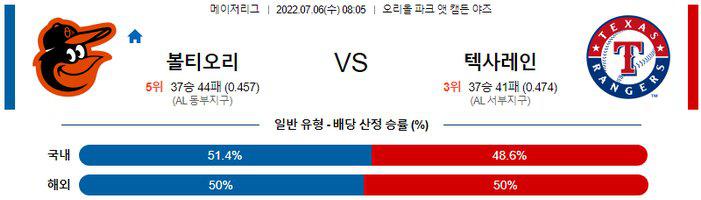 【MLB】 7월 6일 볼티모어 vs 텍사스