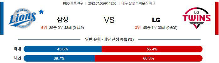 [KBO] 7월6일 삼성 vs LG