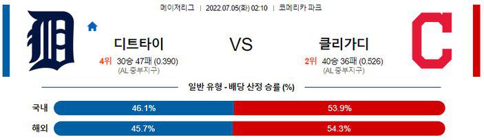 【MLB】 7월 5일 디트로이트 vs 클리블랜드