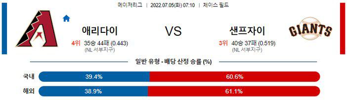 【MLB】 7월 5일 애리조나 vs 샌프란시스코