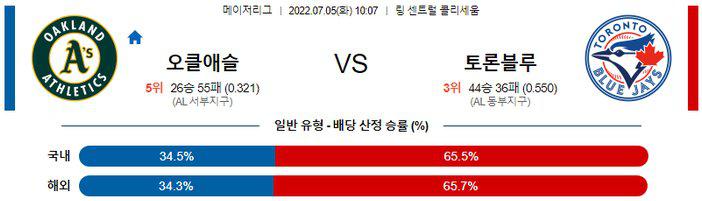 【MLB】 7월 5일 오클랜드 vs 토론토