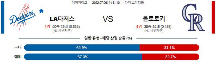 【MLB】 7월 6일 LA 다저스 vs 콜로라도