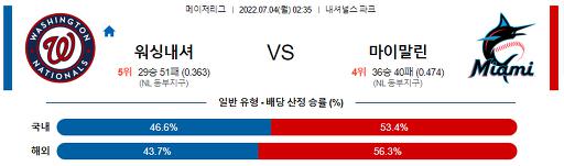 7월 4일 02:35 MLB 워싱턴 : 마이애미