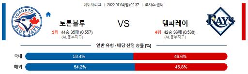 7월 4일 02:37 MLB 토론토 : 탬파베이