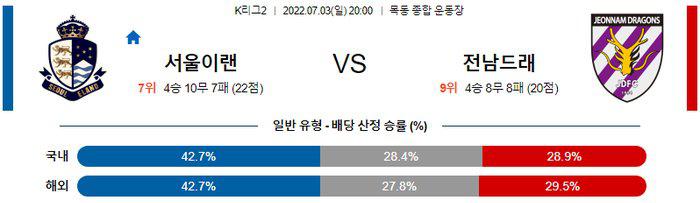 【K리그2】 7월 3일 서울 이랜드 vs 전남 드래곤즈