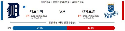 7월 2일 08:10 MLB 디트로이트 : 캔자스시티