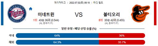 7월 2일 09:10 MLB 미네소타 : 볼티모어