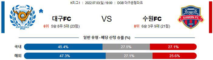 【K리그1】 7월 3일 대구 FC vs 수원 FC