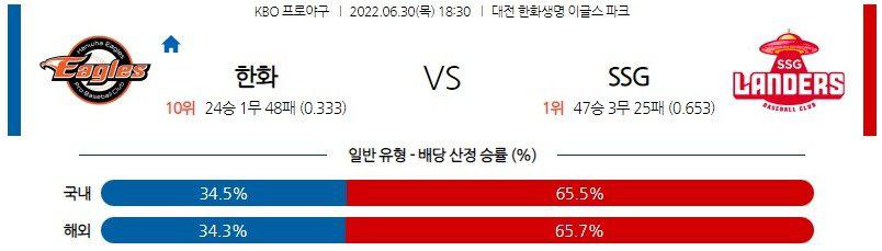 [KBO] 6월 30일 한화 vs SSG