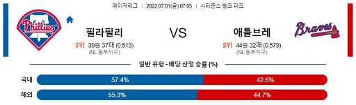 7월 1일 07:05 MLB 필라델피아 : 애틀랜타