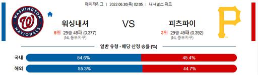 6월 30일 02:05 MLB 워싱턴 : 피츠버그
