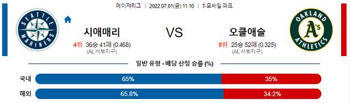 7월 1일 11:10 MLB 시애틀 : 오클랜드