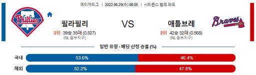 6월 29일 08:05 MLB 필라델피아 : 애틀랜타