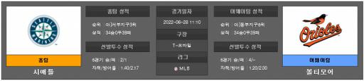 [MLB] 6월 28일 시애틀 : 볼티모어[시애틀]