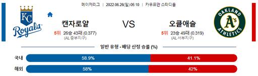 [MLB] 6월26일 캔자스시티 : 오클랜드