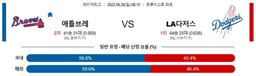 [MLB] 6월26일 애틀랜타 : LA다저스