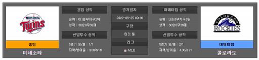 미네소타의 불펜진이 불안하지만 콜로라도 역시 원정 경기력이 좋지 못하다.