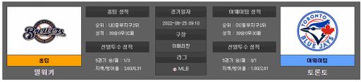 5149 [MLB] 6월26일 밀워키 : 토론토 2022.06.25 300