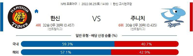 전일 경기 6-4, 승리로 시리즈 기선제압과 함께 3연패에서 벗어나는데 성공한 한신 타선에 대한 기대치가 높은 타이밍 이며 이토 마사시 투수는 지난시즌 주니치를 상대로 3경기 등판에서 주소모두 7이닝 이상 2실점 이하의 투구를 보여줬다. 한신 승리 가능성을 추천 한다.