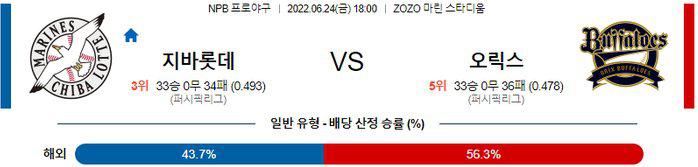 【NPB】 6월 24일 지바롯데 vs 오릭스