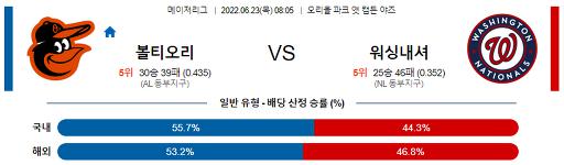 6월 23일 08:05 MLB 볼티모어 : 워싱턴