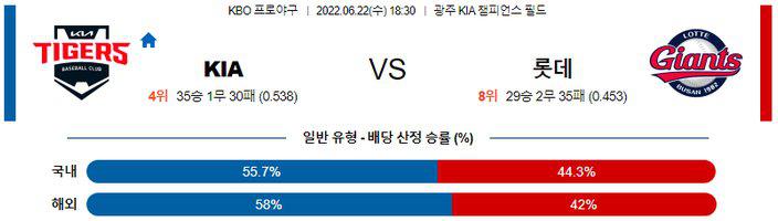 롯데 에이스 반즈 투수를 상대로 2연패에서 벗어나는 승리를 전일 경기에서 기록한 기아 이지만 경기 후반부에 추격을 허용하며 5명의 구원 투수가 마운드에 올라와와 했다는 것이 수요일 경기 흐름에 장애물이 될수 있다고 생각 된다. 최근 2경기 연속 QS+ 투구를 기록했으며 직전경기에서는 9경기 만에 승리를 추가하며 기분잔환에 성공한 스파크맨 투수의 역투가 기대되는 경기. 롯데 승리 가능성을 추천 한다.