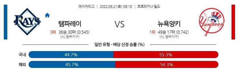 【MLB】 6월 21일 탬파베이 vs 뉴욕양키스