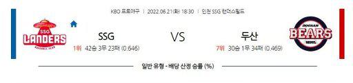 3연승이 중단 되는 패배가 일요일에 나왔지만 지난주 3승3패를 기록한 SSG와 키움, KT를 상대로 2연속 루징 시리즈(2승4패)를 기록한 두산의 만남 이다. 양팀 선발 투수 주소모두 불안 요소가 많은 만큼 투수전 보다는 타격전 흐름이 나타날 가능성이 높은 경기다. 또한, 지난시즌과 올시즌에 3경기 연속 좋은 모습을 보인 기억이 없는 이영하 투수의 징크스도 생각해야 하는 경기. SSG 승리 가능성을 추천 한다.