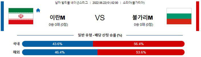 이란은 도쿄 올림픽 까지 팀의 에이스가 되었던 사에드 마루프나 세예드 무사비(37세) 세터가 대표팀에서 은퇴하면서 세터 포지션에 약점이 생긴 전력 이다. 홈에서 경기를 치르게 되는 불가리아가 범실을 줄어들 것으로 예상되는 만큼 이란을 상대로 이번 대회 마수걸이 승리를 기록할 것으로 예상된다.
