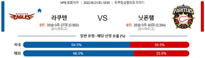 【NPB】 6월 21일 라쿠텐 vs 니혼햄