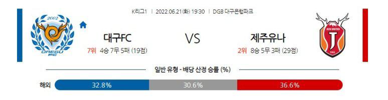 【K리그1】 6월 21일 대구FC vs 제주유나이티드