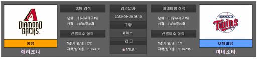 열람중 6월20일 MLB 애리조나 : 미네소타 2022.06.19 297