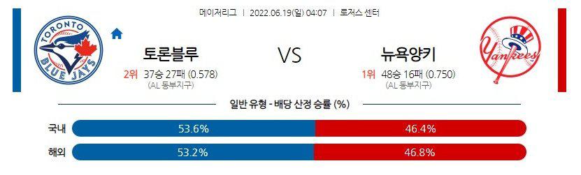 【MLB】 6월 19일 토론토 vs 뉴욕양키스
