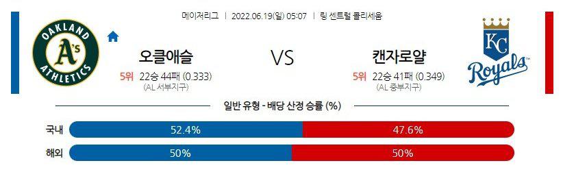 【MLB】 6월 19일 오클랜드 vs 캔자스시티