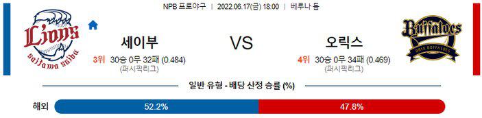 【NPB】 6월 17일 세이부 vs 오릭스