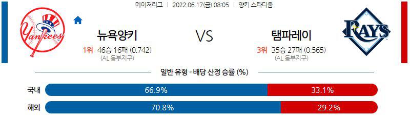 【MLB】 6월 17일 뉴욕 양키스 vs 탬파베이