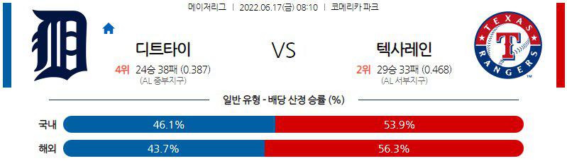 【MLB】 6월 17일 디트로이트 vs 텍사스 레인저스