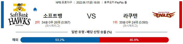 【NPB】 6월 17일 소프트뱅크 vs 라쿠텐