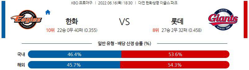5연패에 빠진 한화의 불안한 수비와 투타의 엇박자 현상이 계속 되고 있다. 또한, 스파크맨 투수에게 생소함 이라는 추가적인 무기가 장착되게 되며 전일 경기에서 11-5, 승리를 만들어 낸 롯데 타선의 지원도 지대되는 타이밍. 롯데 승리 가능성을 추천 한다.