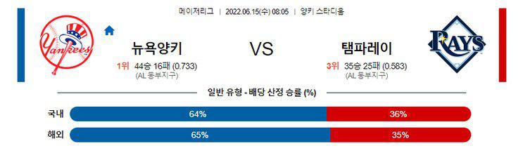 【MLB】 6월15일 뉴욕양키스 vs 탬파베이