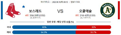 6월 16일 08:10 MLB 보스턴 : 오클랜드