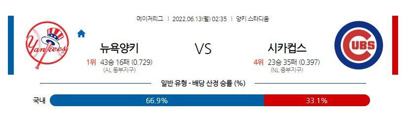 【MLB】 6월13일 뉴욕양키스 vs 시카고컵스