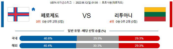 【UEFA네이션스리그】 6월 12일 페로 제도 vs 리투아니아