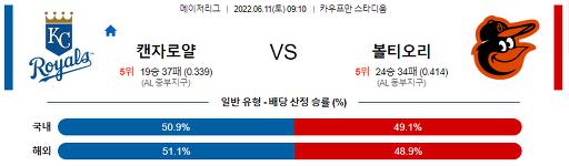 6월 11일 09:10 MLB 캔자스시티 : 볼티모어