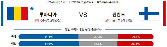 【UEFA네이션스리그】 6월 12일 루마니아 vs 핀란드