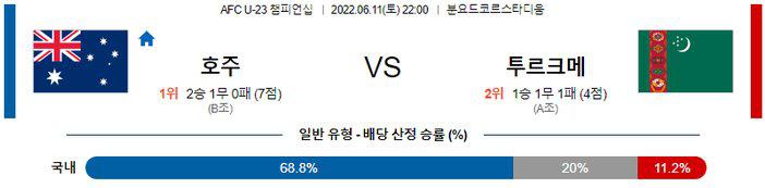 【AFC U-23】 6월 11일 호주 vs 투르크메니스탄