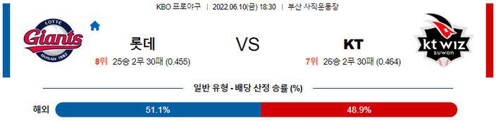 커리어 하이 시즌을 만들어 나가고 있던 박세웅 투수가 최근에 3연패에 빠졌지만 2경기는 원정에서 경기였고 최근 2경기 홈경기에서는 자신의 몫을 해냈다. 또한, 롯데 타선을 올시즌 배제성 투수 공략에 어려움이 없었던 모습. 롯데 승리 가능성을 추천 한다.