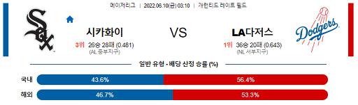[MLB] 6월 10일 화이트삭스 : LA다저스